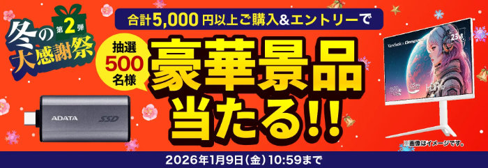 2025年12月現在、ドスパラでは「冬の大感謝祭キャンペーン」を実施しています。いつもより明らかにお得なキャンペーンがいくつもあって、BTOパソコンを買うには最適な時期だと実感できます。